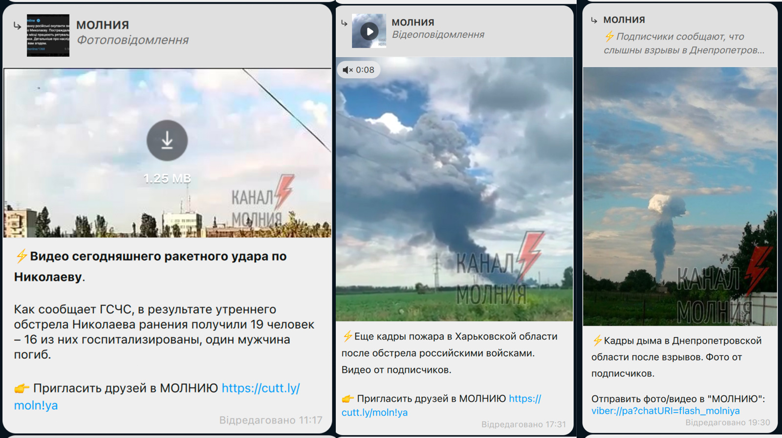 Приклад "Молнии" добре ілюструє тезу про те, що анонімні канали далеко не завжди є звичайними збирачами та поширювачами певної інформації. Натомість вони можуть активно просувати певну точку зору або ж взагалі бути коригувальниками ворожого вогню. А тому підписка на такі канали і надсилання до них відео й фото наслідків ракетних атак або артилерійських обстрілів може, зрештою, перетворитися на небезпеку для самих авторів та авторок таких матеріалів.
