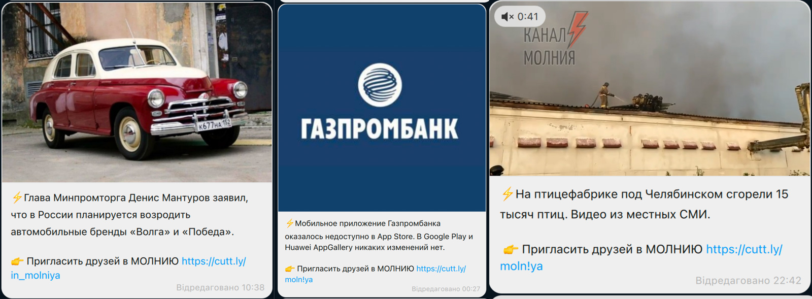 Показово, що власники "Молнии" не поспішають відкрито просувати свої повідомлення через сервіси Meta (створюючи сторінки у Facebook або Instagram). Натомість для поширення своїх повідомлень вони використовують невеликі сторінки іншої тематики.