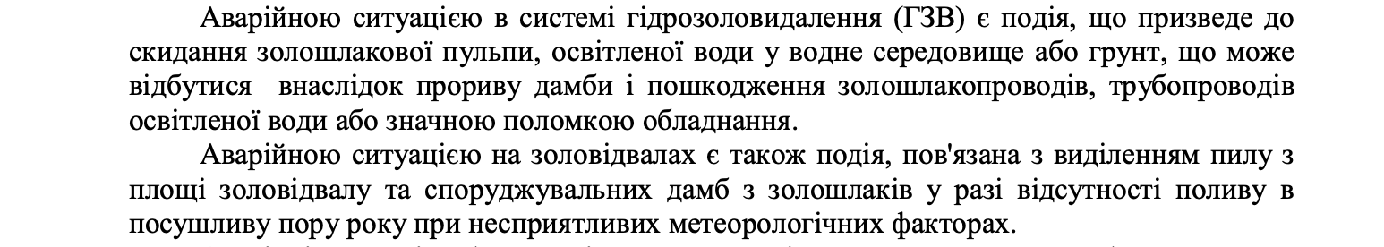 Цитата зі Звіту з ОВД золовідвалу ЗТЕС