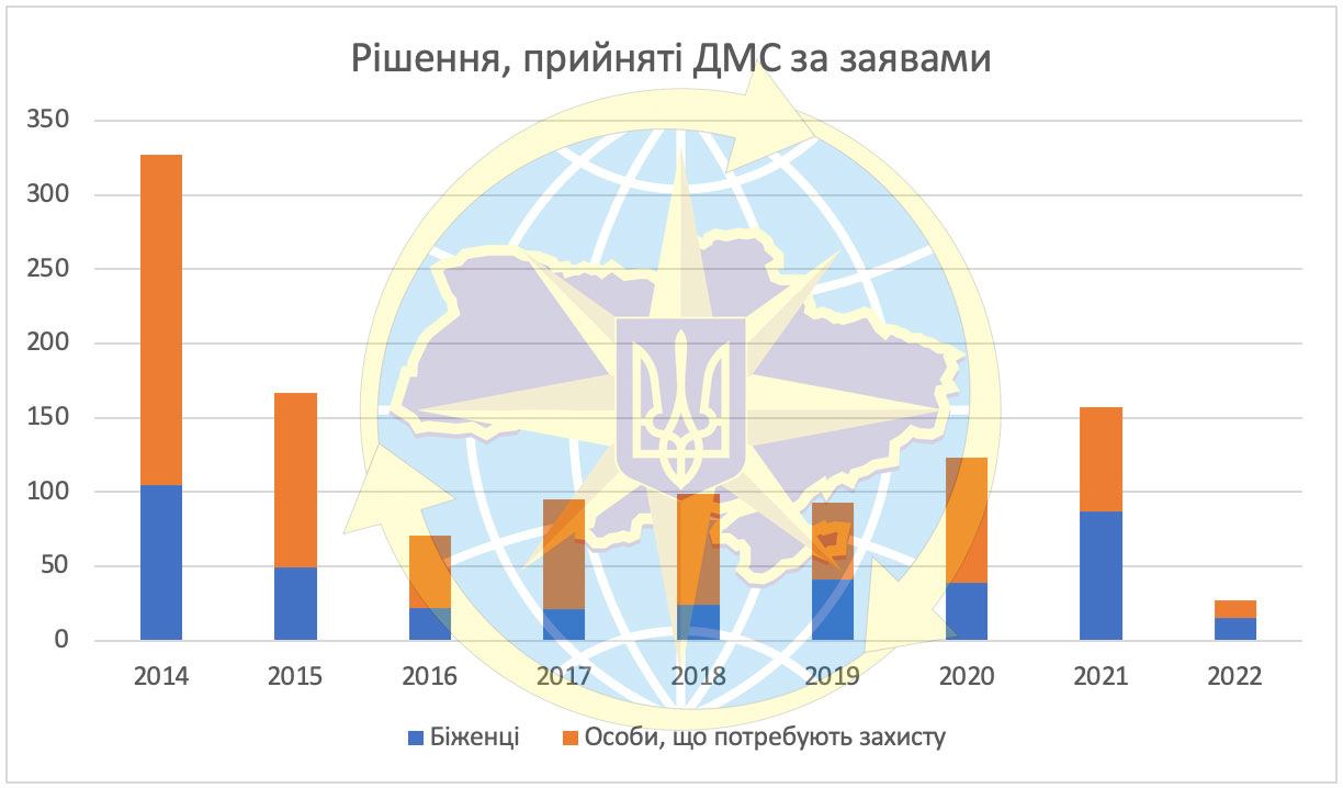 Отже, з 2014 року і до середини цього року міграційною службою за заявами шукачів захисту в Україні було прийнято 403 рішення про визнання їх біженцями, зокрема 15 – протягом 2022 року. Додатковий захист було надано ще для 756 іноземців. При цьому 12-ом – у 2022 році.