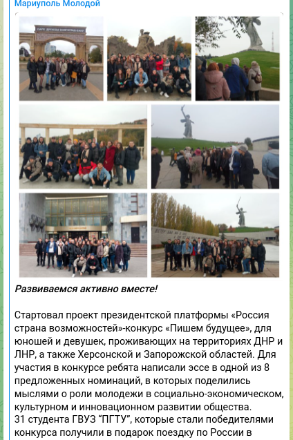 Нещодавно на окупованих територіях був проведений молодіжний конкурс есе про "майбутнє у складі Росії", переможці відвідали Волгоград.