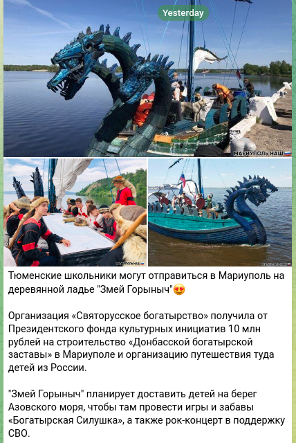 - Створюють культурні активності. Для підтримки ілюзії нормальності окупації вдаються, зокрема, до послуг акторів, які грали в Маріупольському театрі, де 16 березня внаслідок російського авіаудару загинули жителі міста. Зараз акторський колектив вирушив на гастролі містами півдня Росії під брендом театру з Маріуполя.
