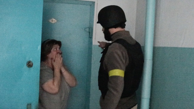 Оскільки серед вилучених документів була моя акредитація ЗСУ, викликали ЗСУ. З'явилися троє суворих, озброєних мало не ядерними бомбами людей.