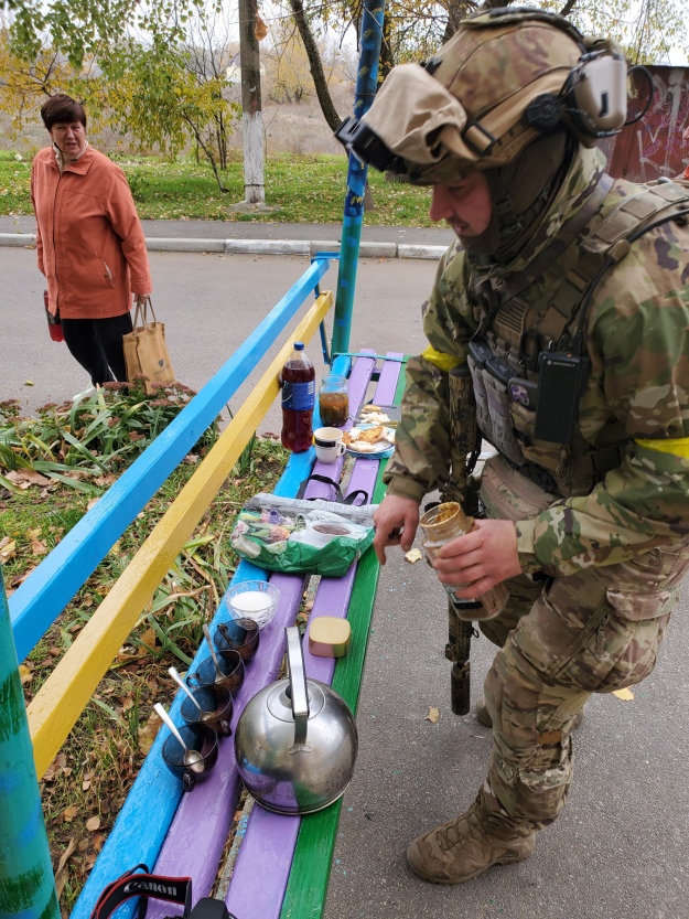 Як кинутий в озеро хлібець миттєво опиняється в колі зацікавлених рибок, так само швидко людина у камуфляжі ЗСУ на вулиці Херсона потрапляла в оточення людей, які вітали, розпитували, розповідали.