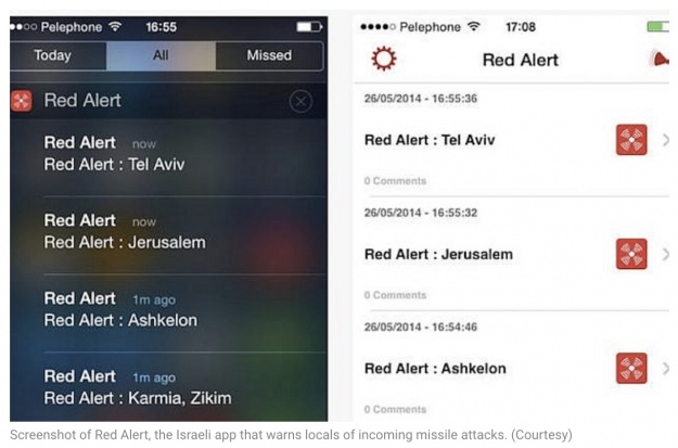 Ось так виглядають сповіщення Red Alert, ізраїльської програми, яка попереджає місцевих жителів про наближення ракетних атак.