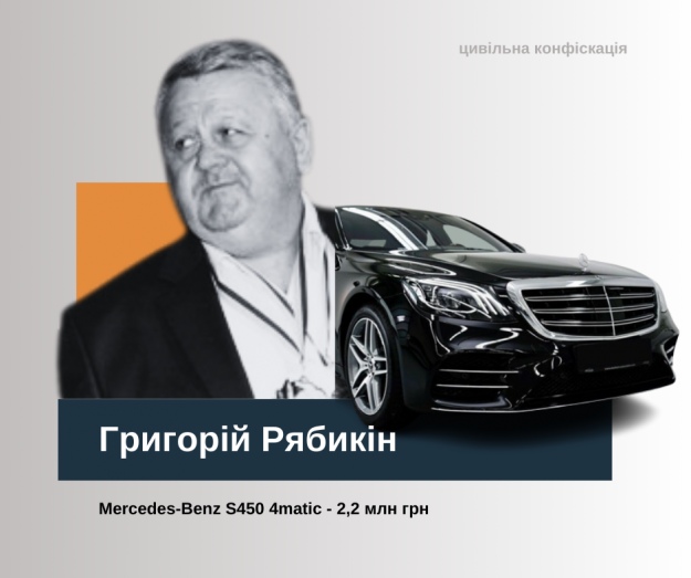 Колишній депутат-регіонал Криворізької райради Григорій Рябикін купив Mercedes-Benz S450 4matic. Ціна авто склала понад 3,6 млн грн. За версією САП, законних заощаджень на таку автівку в депутата не було. Тому прокурори подали позов про цивільну конфіскацію 2,2 млн грн, яких нібито не вистачало для купівлі авто.