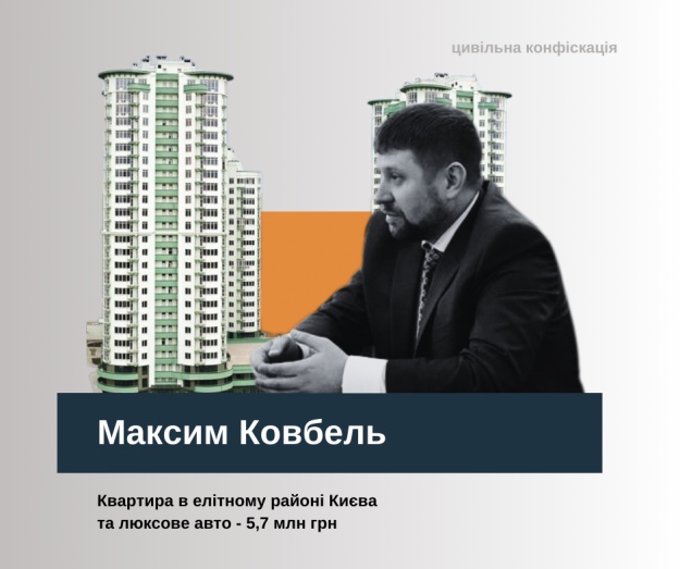 За версією САП, суддя Ковбель нібито придбав коштовну власність, яку успішно записав на родичів. Тещі дісталася квартира в столичному ЖК "Ізумрудний" на 142 м2, про яку сайт забудовника гордо пише: "на авто до Хрещатика можна дістатися за 10 хв". Вартість квартири – 4,6 млн грн. Також батько судді отримав автомобіль Toyota Land Cruiser за 2,1 млн грн.