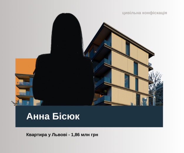 Начальниця відділу митного оформлення митного поста "Городок" Анна Бісюк отримала від своєї матері у подарунок квартиру на понад 100 квадратів на вул. Мечникова у Львові. Покупка матері обійшлася в 1,86 млн грн, яких у неї нібито не було. Збирати докази прокурори почали після того, як отримали інформацію від ДБР та НАЗК. САП просить стягнути ці 1,86 млн грн на користь держави.