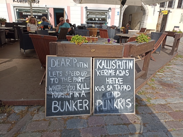 Вільнюс. Будинок з українським прапором. На весь балкон. "Сіменс"-реклама на торці ще більша. "Сіменс" – спонсор війни, не пішов із Росії.