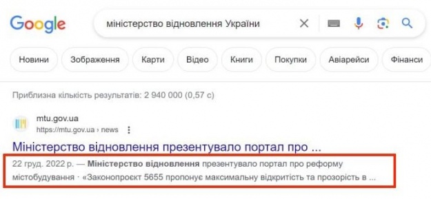 Аби сайт відвідали якомога більше людей, пошук Мінвідновлення було налаштовано таким чином, щоб першою вкладкою була саме новина про сайт № 5655. Тут важливо зафіксувати, що створення та адміністрування такого сайту міністерством нівелює інституційний підхід до законотворчості, адже Кабмін як виконавча гілка влади не може витрачати ресурси на нечинні ініціативи.