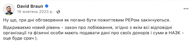 Врегулювати лобістську діяльність необхідно, проте зробити це ми маємо відкрито, без політичних маніпуляцій та з дотриманням усіх міжнародних стандартів. Лише за таких умов регулювання досягне мети, яка визначена у пояснювальній записці законопроєкту – забезпечення гласності та прозорості прийняття державних рішень.