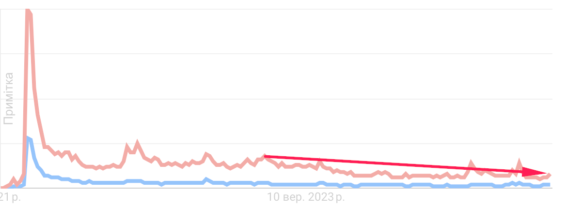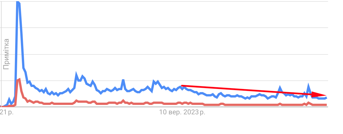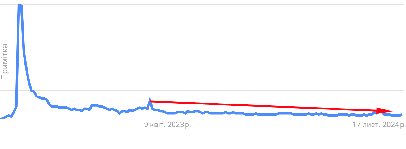 Сервіс по запитам показав спад попиту за цими ключовими словами.