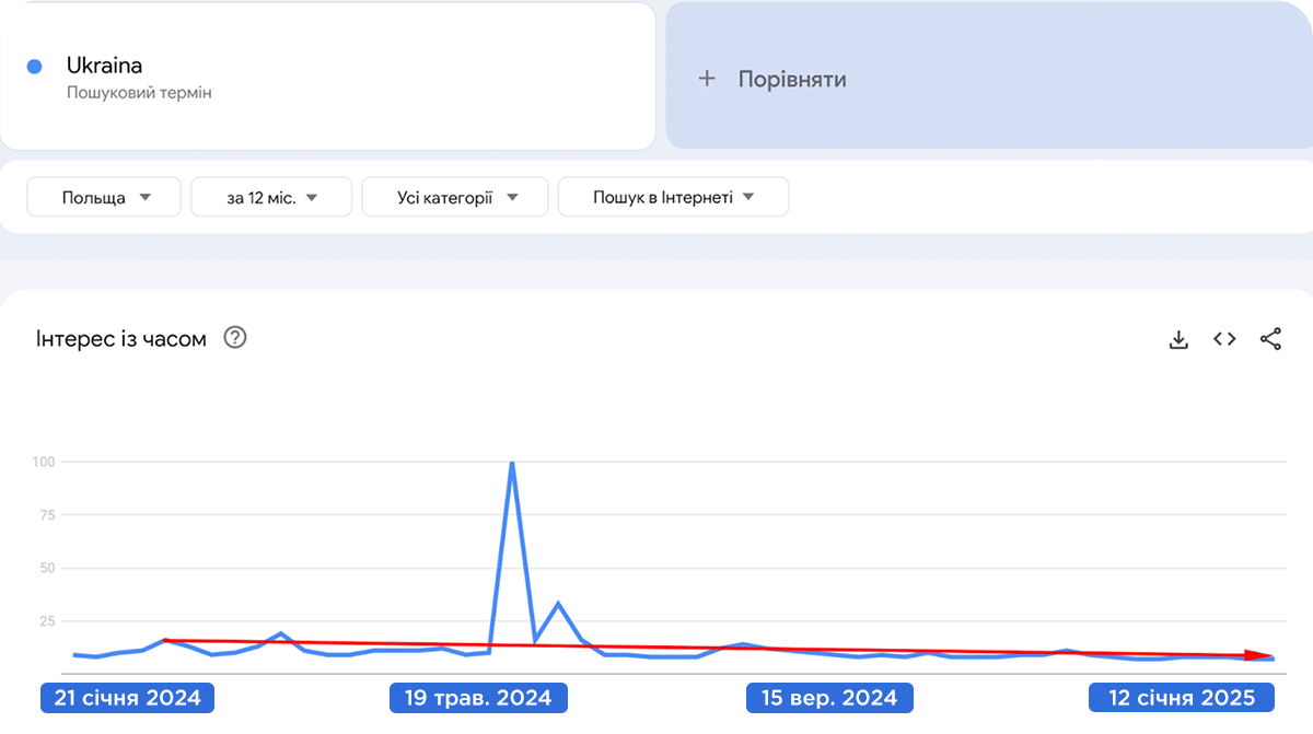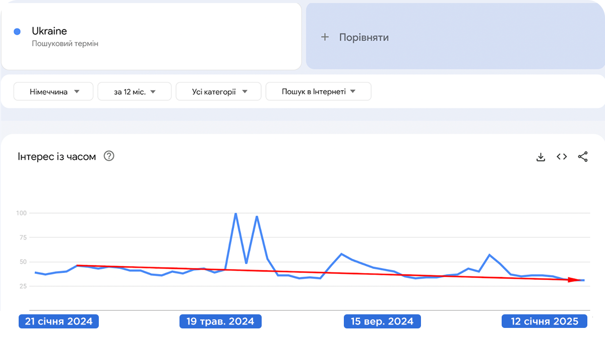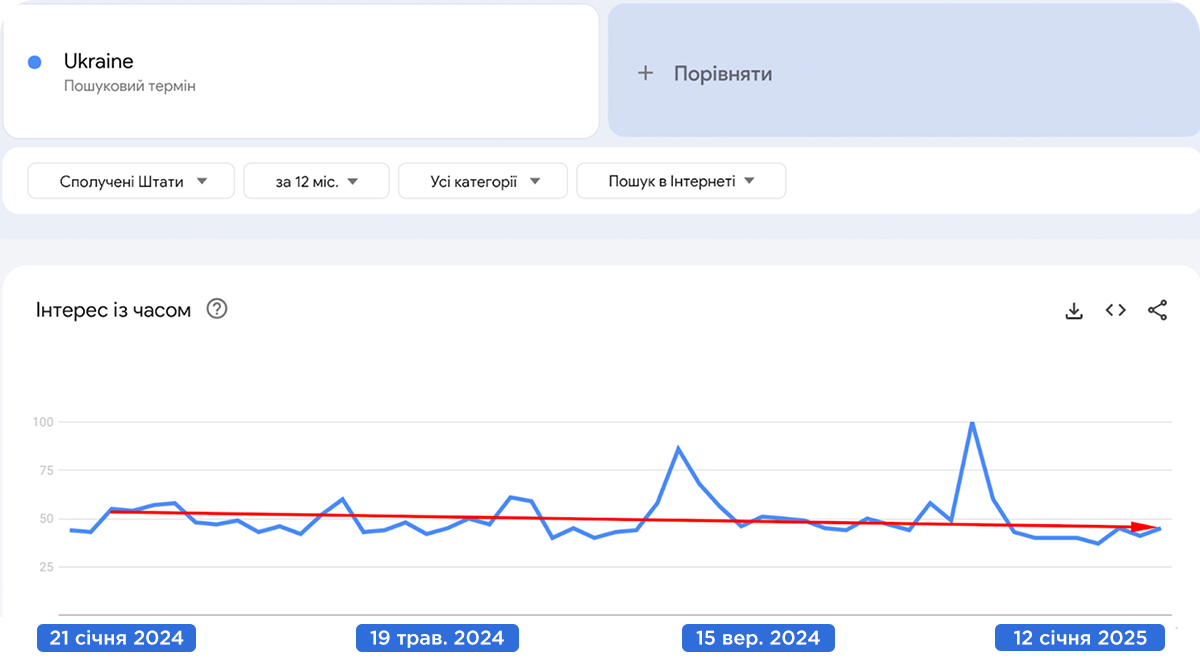 У 2024-му аналіз Google-запитів показував зниження інтересу. Це викликало занепокоєння – ми залежні від зовнішньої допомоги, яка дає можливість достойно відповідати на російську агресію.