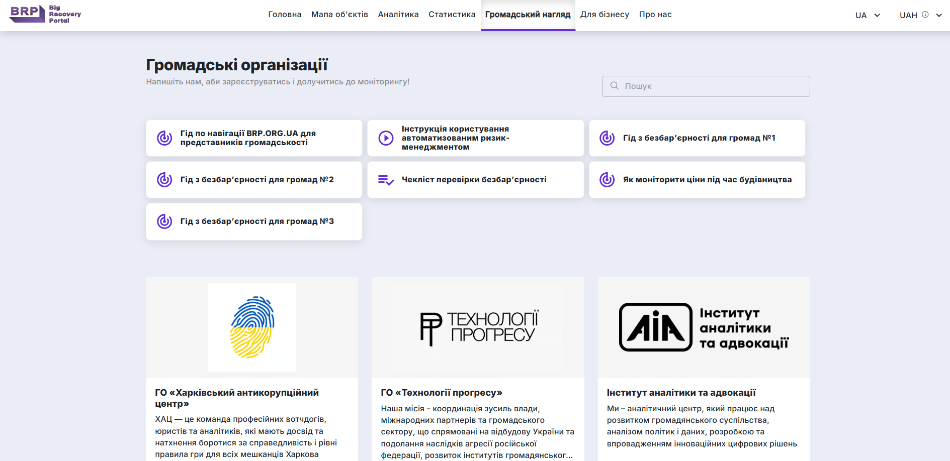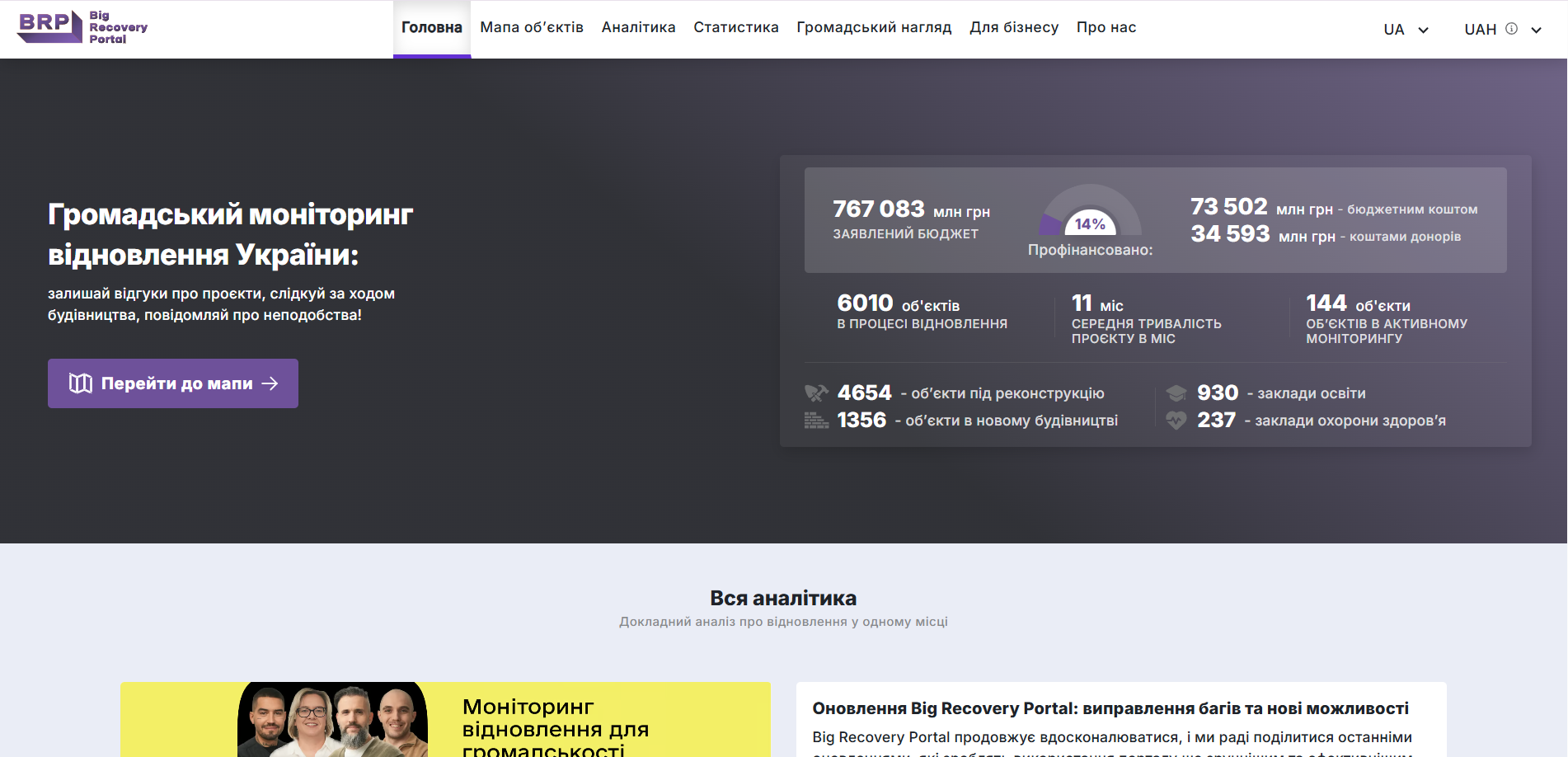 Портал великого відновлення (Big Recovery Portal – BRP) – це IT-інструмент, що дозволяє трекати процес відбудови всіх охочим через власний комп'ютер.