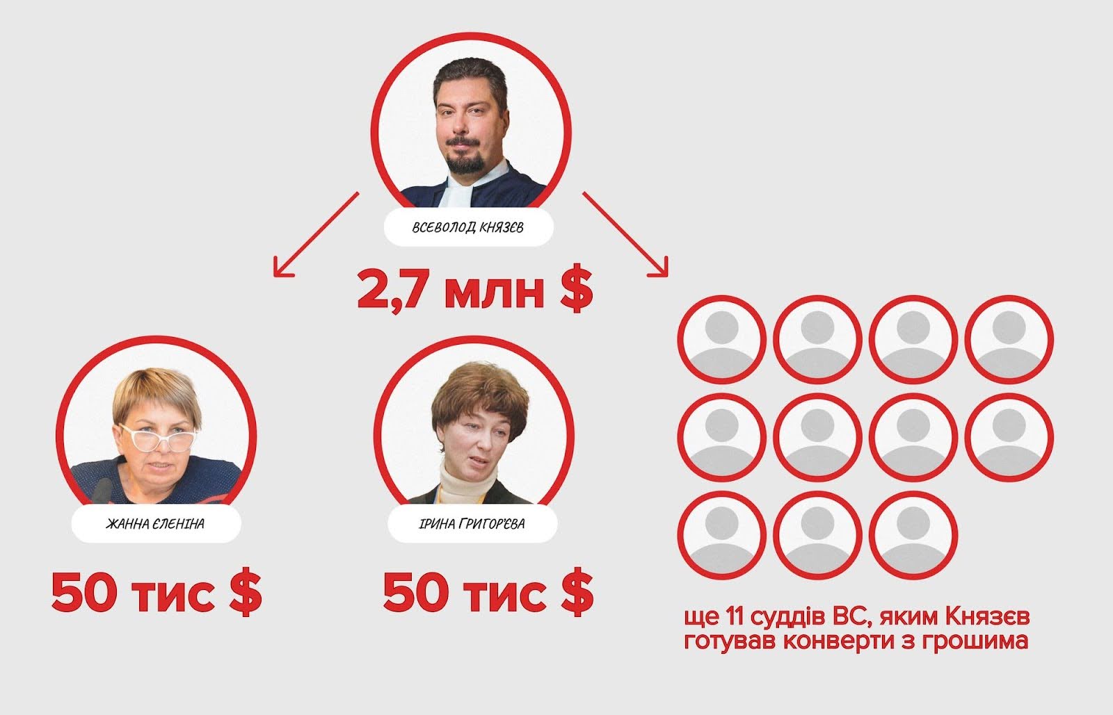 Імена решти суддів, для яких Князєв готував конверти з грошима, невідомі. Вони продовжують працювати у Верховному Суді, ухвалювати найважливіші рішення, зокрема ті, які зривають судову реформу та перешкоджають євроінтеграції. Про них ми детальніше розповімо далі.