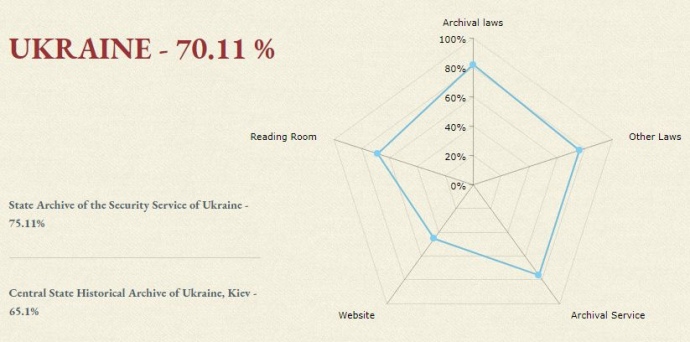 Україна отримала найвищий показник – 70,11% в загальному підсумку оцінювання, і опинилася на першому місці за мірою відкритості архівів.