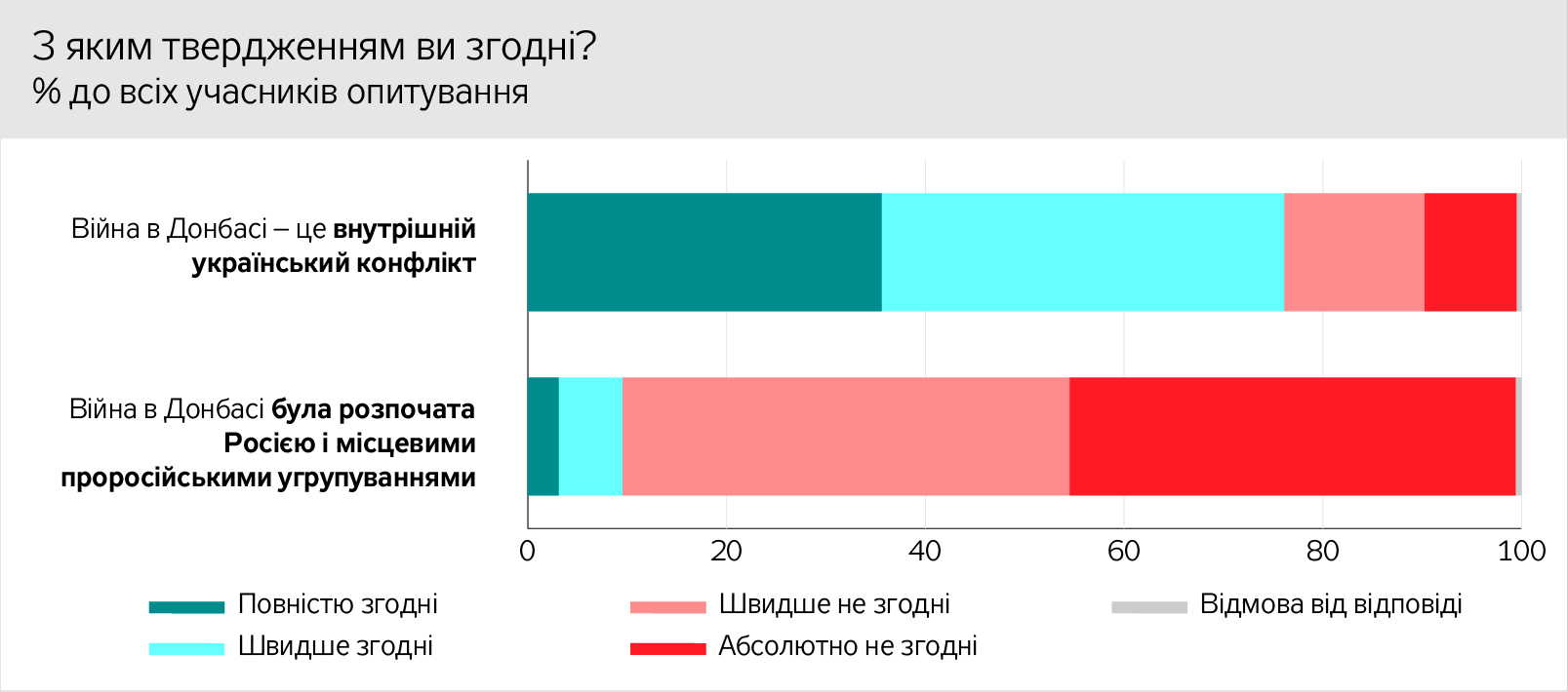 Навіть на неокупованих територіях спрацьовує так звана спіраль замовчування – коли респонденти не хочуть відповідати, якщо їхня думка протилежна загальним настроям у місцевості.