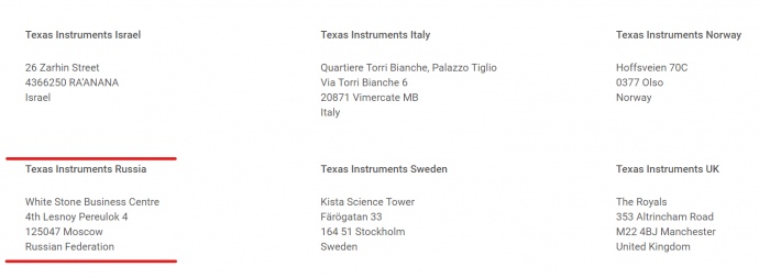Analog Devices announced its withdrawal from the Russian market at the beginning of March whereas Taxes Instruments continues being neutral until today. Its official web site still indicates an address of its Moscow office and current Russian telephone number.