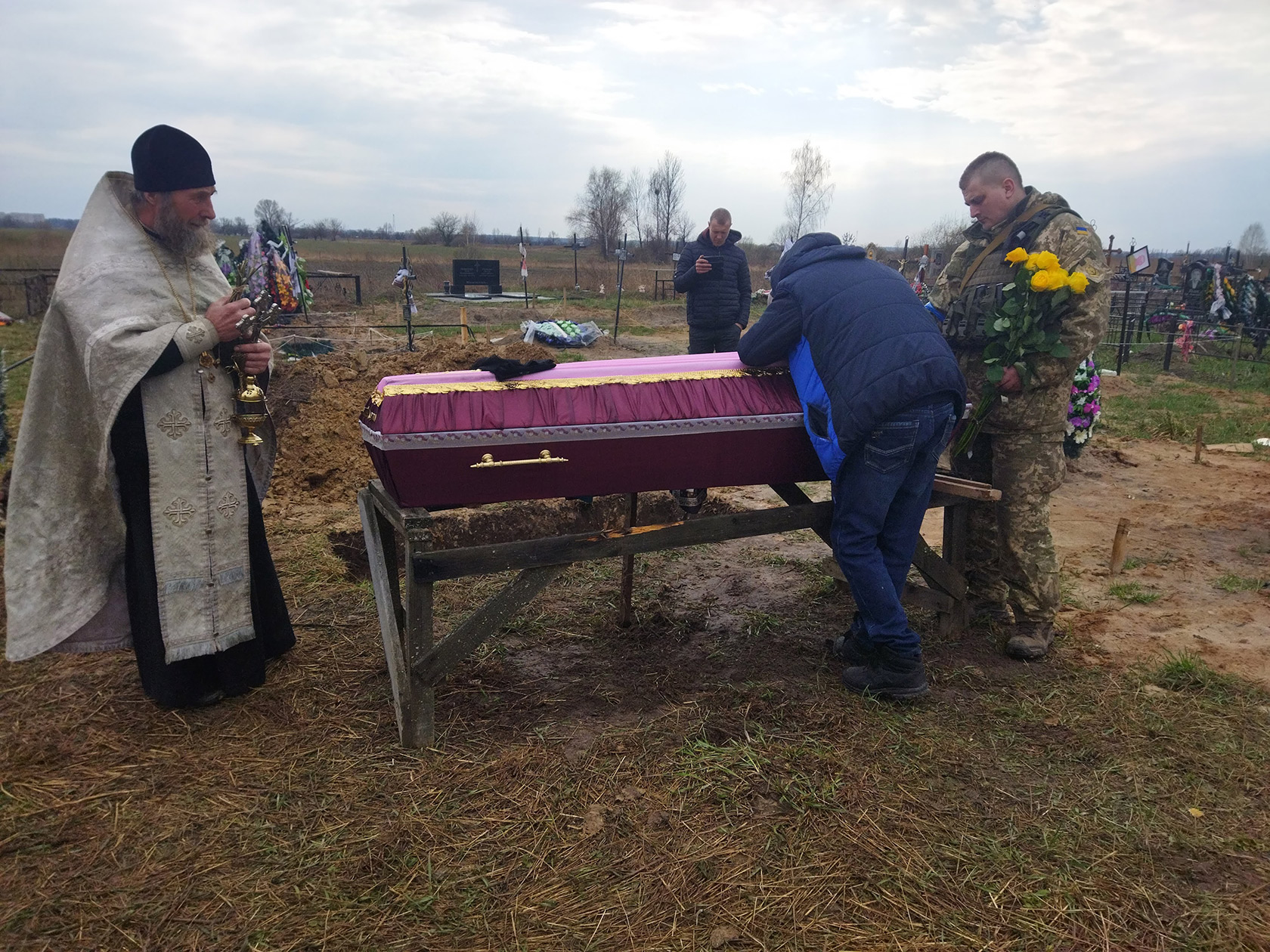 Oleksandr Kononov was burried without a coffin at a local cemetery next to his family members.