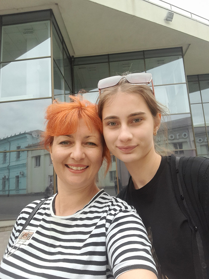 On the 25th of February 2022, Hennadiy Kamenev returned to the Armed Forces. He is an artilleryman. He fought in battles for Kyiv and Irpin. Zhanna evacuated their children to her friend in Zhytomyr Region and returned to Bucha. For several days she gave out food supplies from her store and evacuated the locals. It took all of her time. Her husband told her to go back to Zhytomyr but she answered that her duty was to be of help here. The number of people she managed to get out of the intensively bombarded and threatened by the Russian advance towns around Kyiv is unknown. But definitely not less than 10. One of those saved by Zhanna is Olena Novichuk.