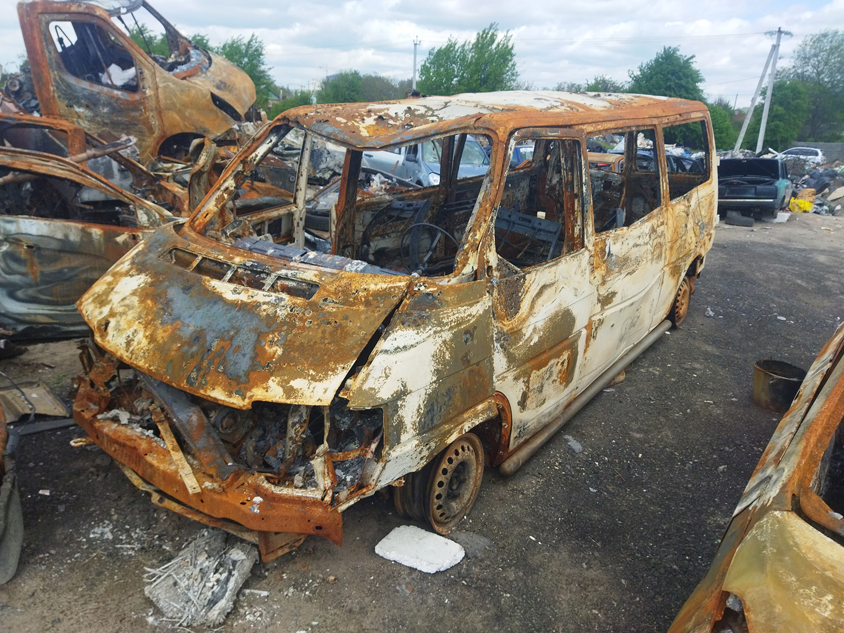 Hennadiy found out that her wife`s passengers decided to flee after seeing the atrocities committed by the occupiers in Bucha. Russian soldiers shot the van first from an infantry combat vehicle and then from their machine guns. Zhanna`s husband found a witness of the tragedy who managed to take a picture of the car when it still had been blue and Zhanna`s hand could be seen in the window. In 40 minutes the same witness took another picture. The car had gone white. The Russians gunned down an old woman near the van and a spark from the shooting ignited the fuel that was leaking from the car setting it ablaze.