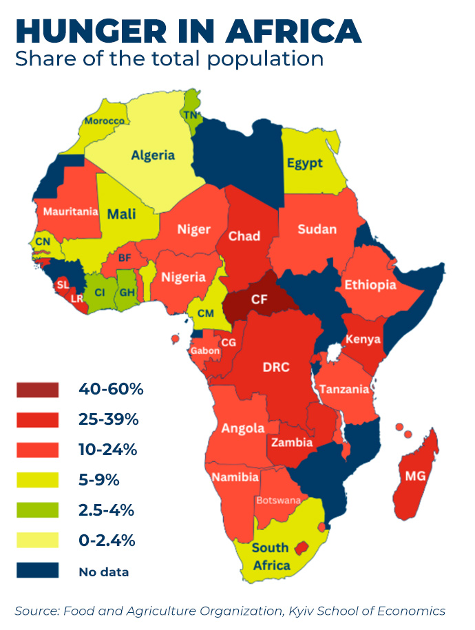 Research conducted by the Kyiv School of Economics (KSE) Center for Food and Land Use this year indicated that 32 out of 40 African countries for which data is available (54 independent states are located on the African continent) obtain more than 70% of their wheat from imports. This makes them dependent on foreign grain.