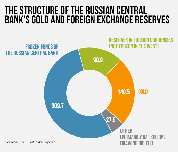 "We must admit that Russia was preparing for war not only militarily but also financially. For example, it has reduced its dependence on the dollar and euro in the structure of its gold and foreign exchange reserves. Besides, it has accumulated about US$180 billion in the National Wealth Fund (NWF)," explains Yuliia Pavytska, co-author of the KSE report on the state of the Russian economy.