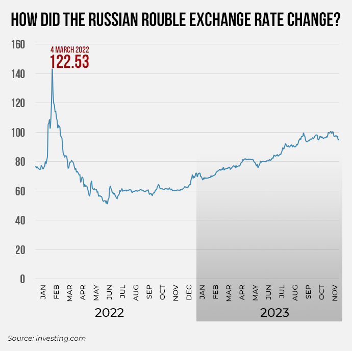 However, the actual financial problems in Russia had started a little earlier. The Russian budget deficit exceeded RUB 4 trillion [US$42.5 billion] in December 2022. This happened in the first month of the oil export restrictions.