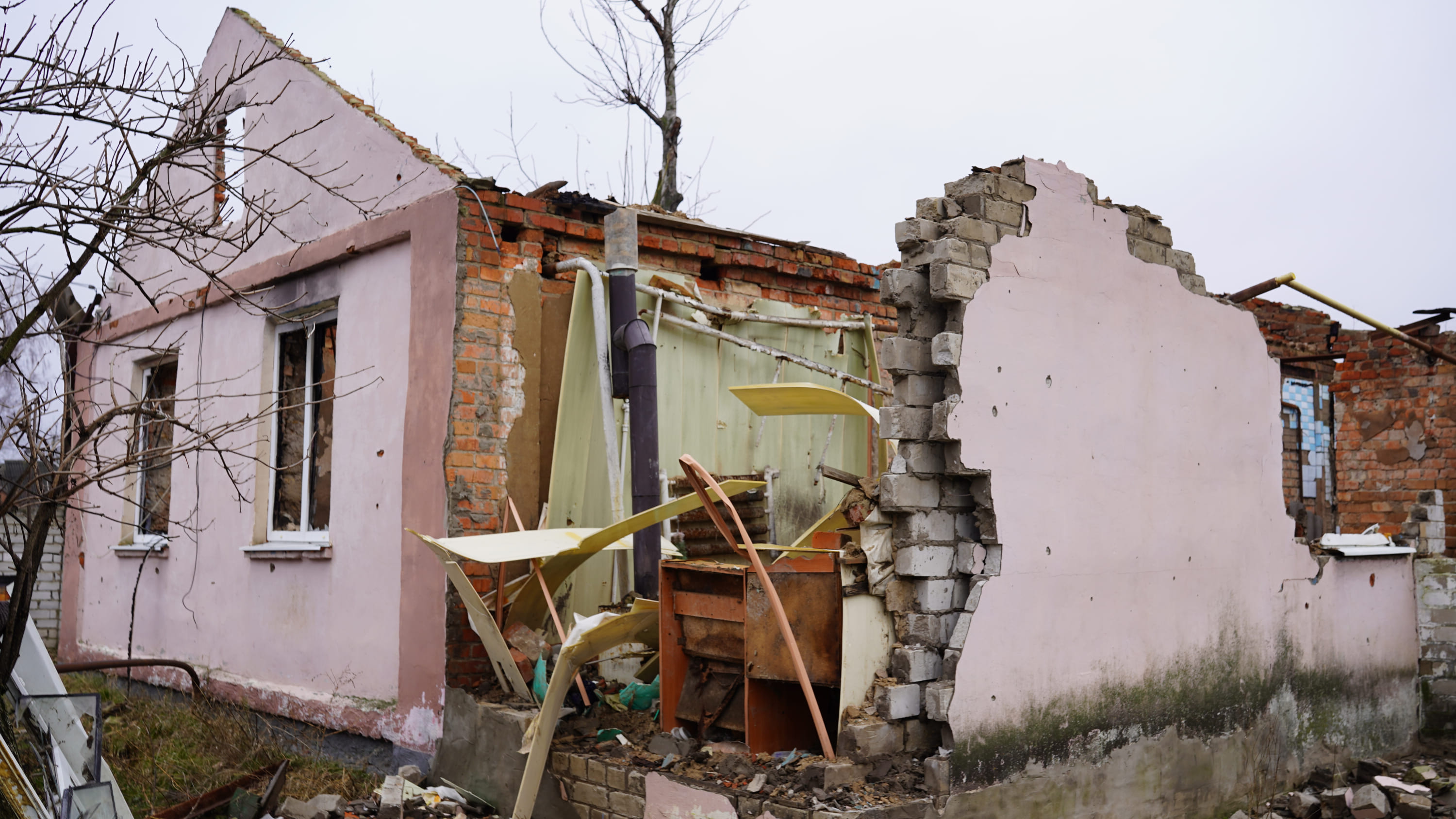"My house was hit by an Iskander!" Halyna is utterly convinced of this. However, the damage to her house, though extensive, points rather to an unexploded projectile. The missile flew across her house and out the other side, smashing the brick fence. Tsyrkuny or not, it was enough to deprive a senior citizen of a roof over her head.