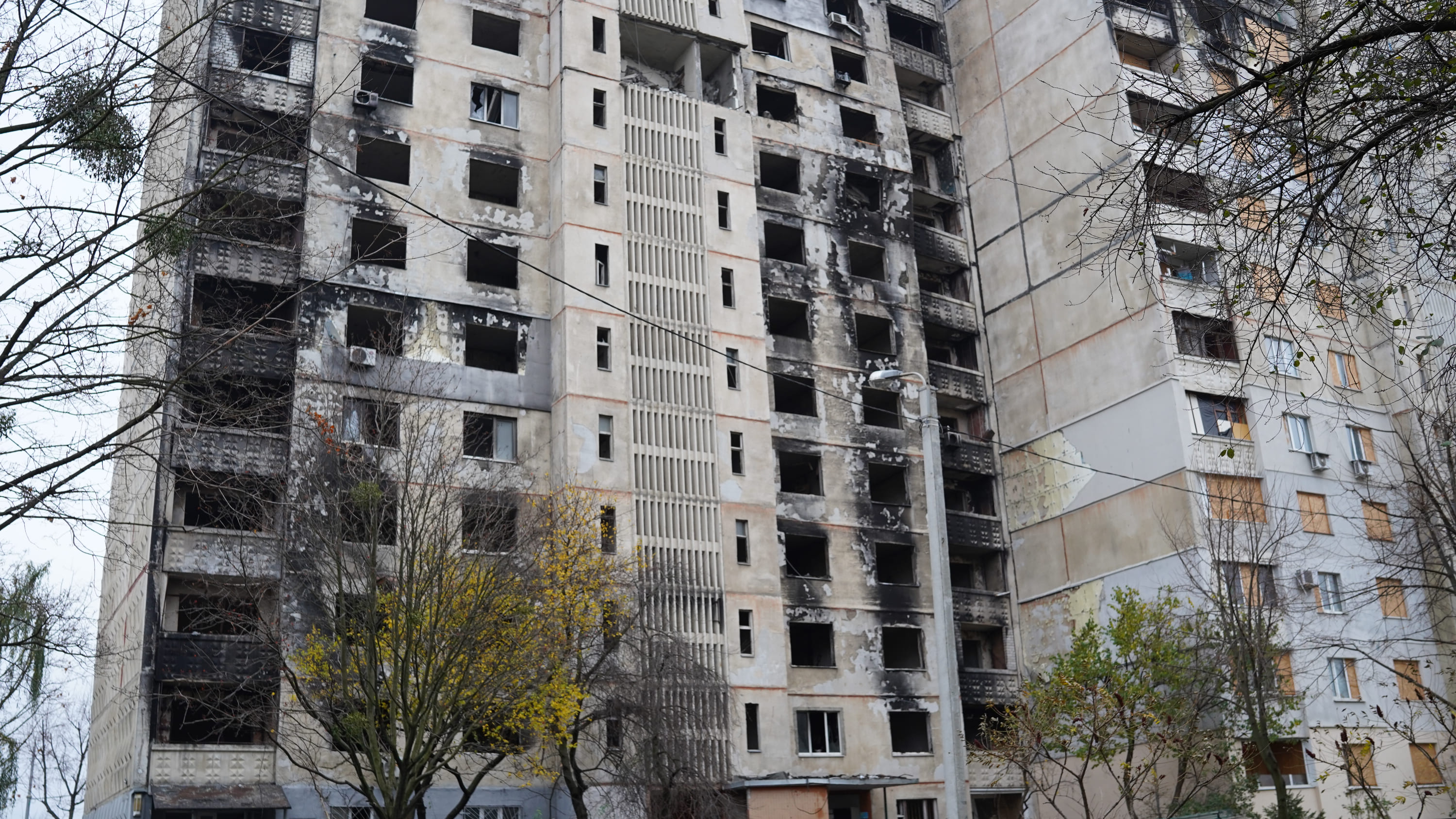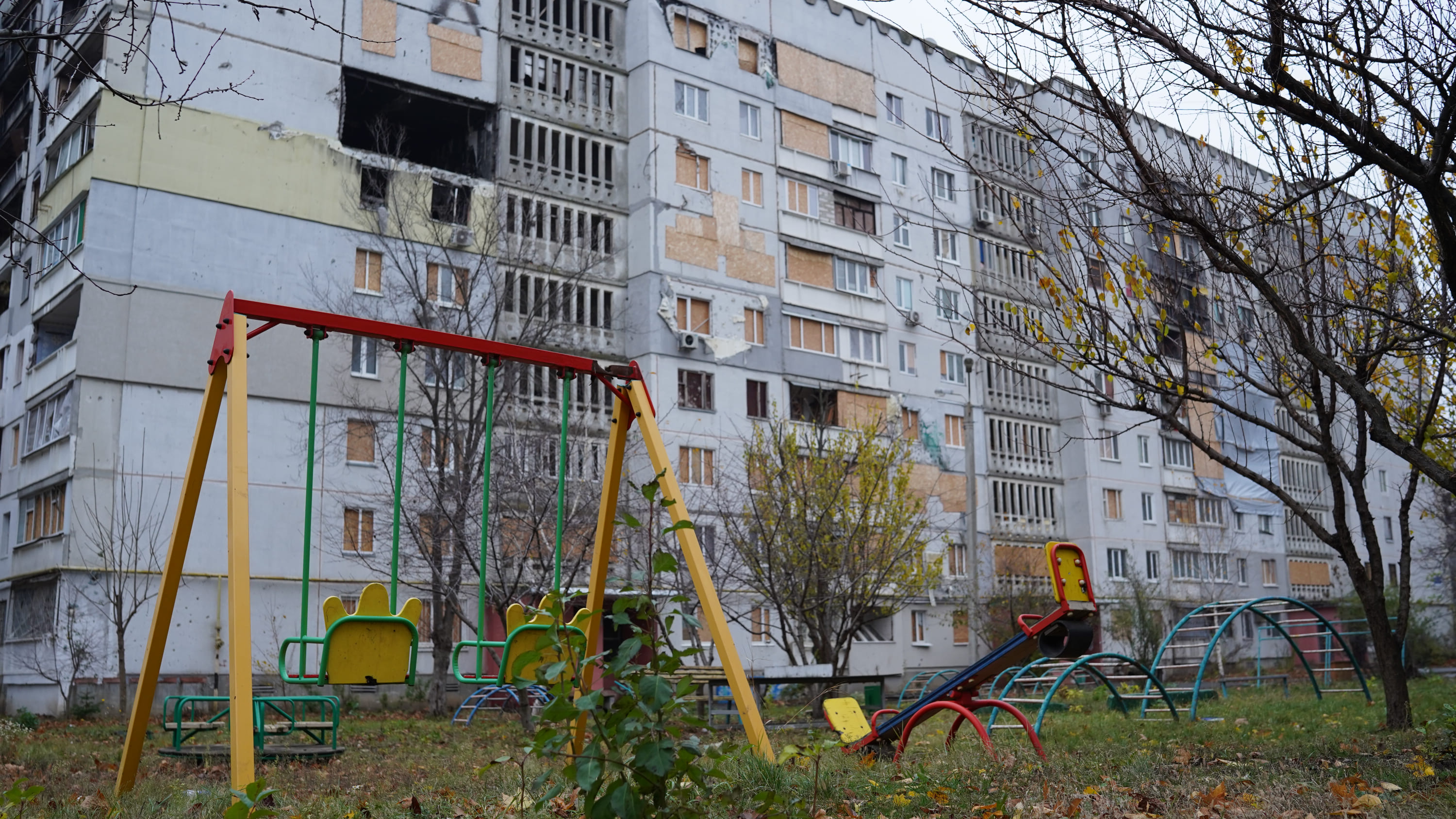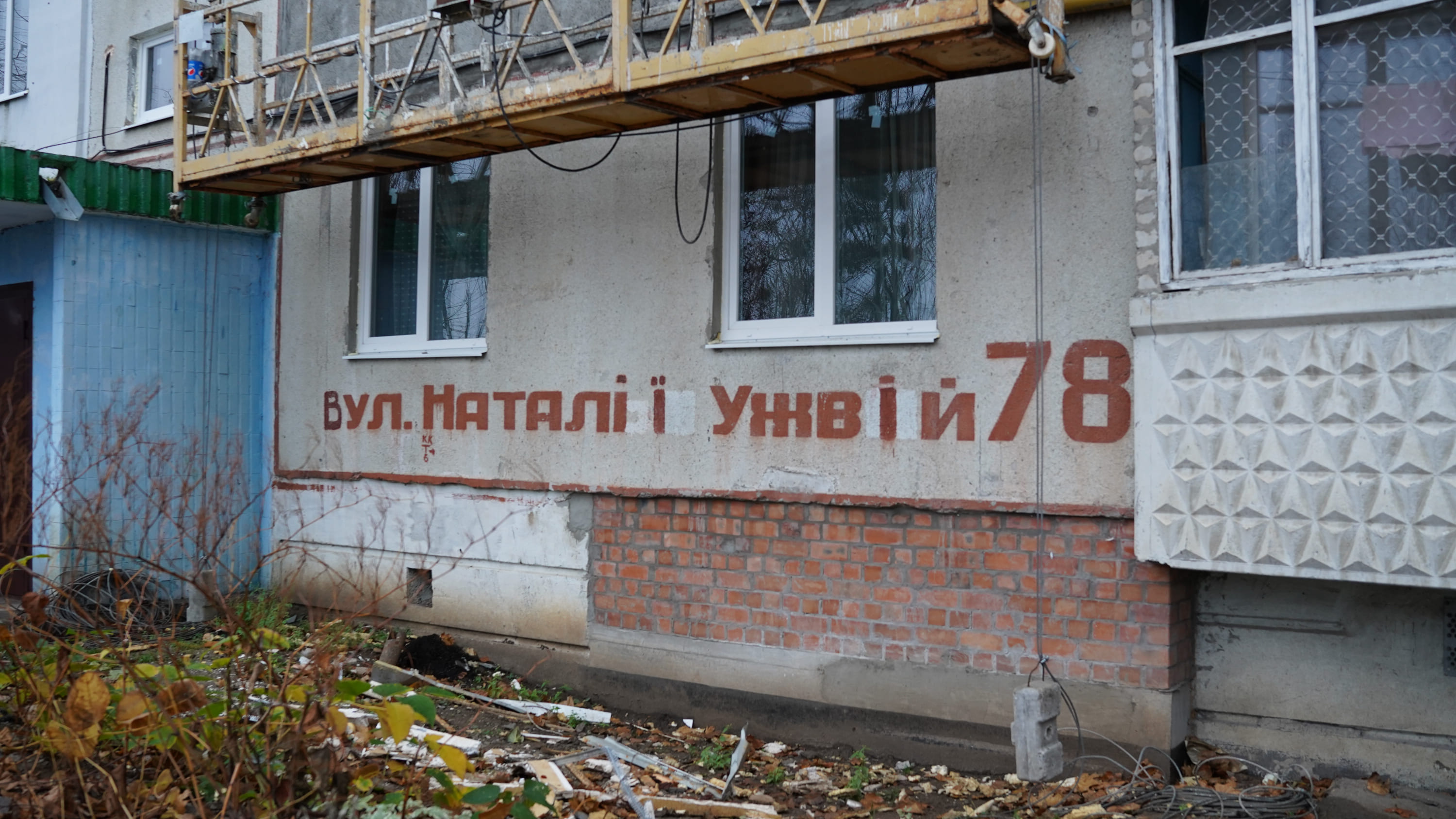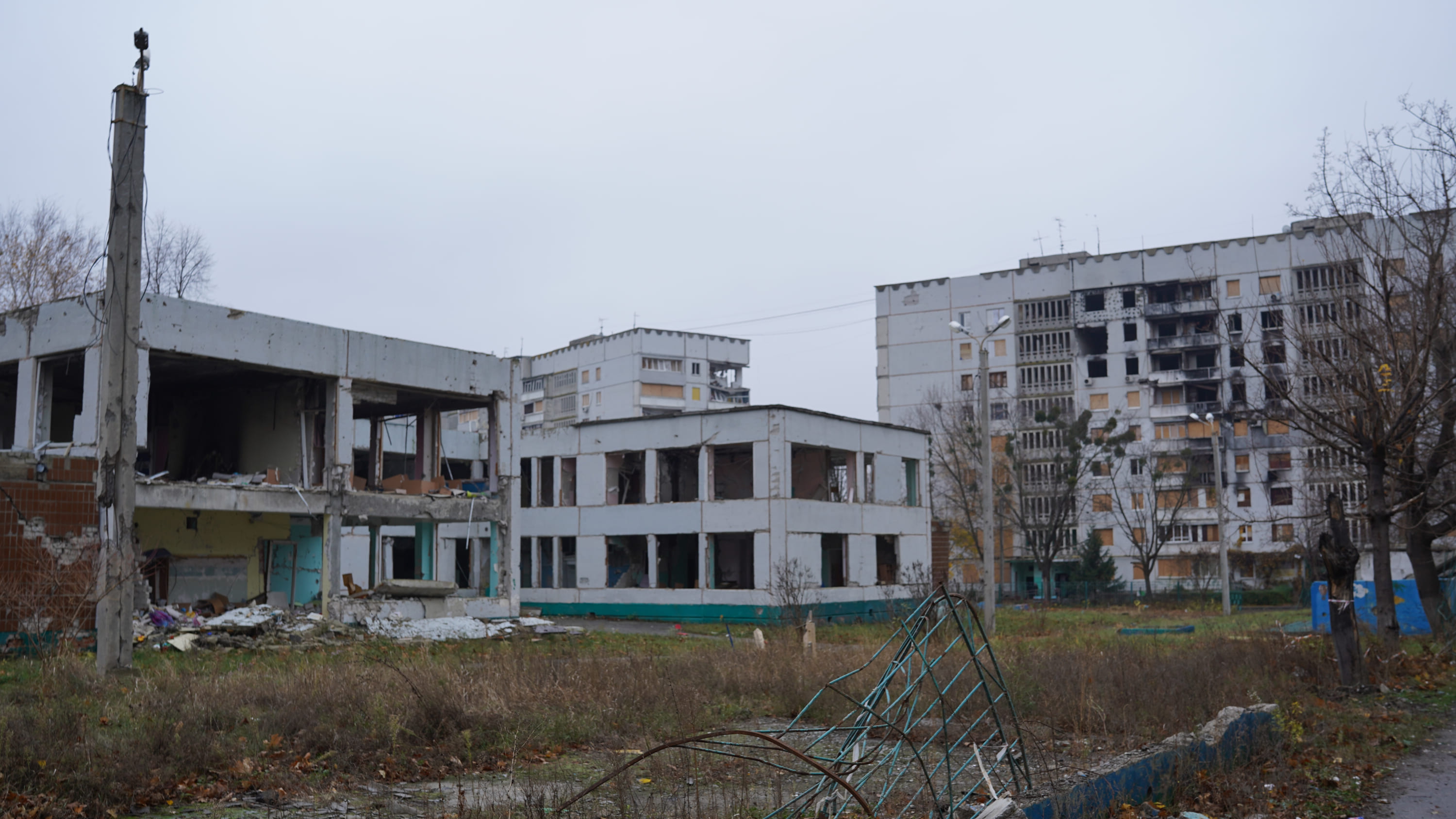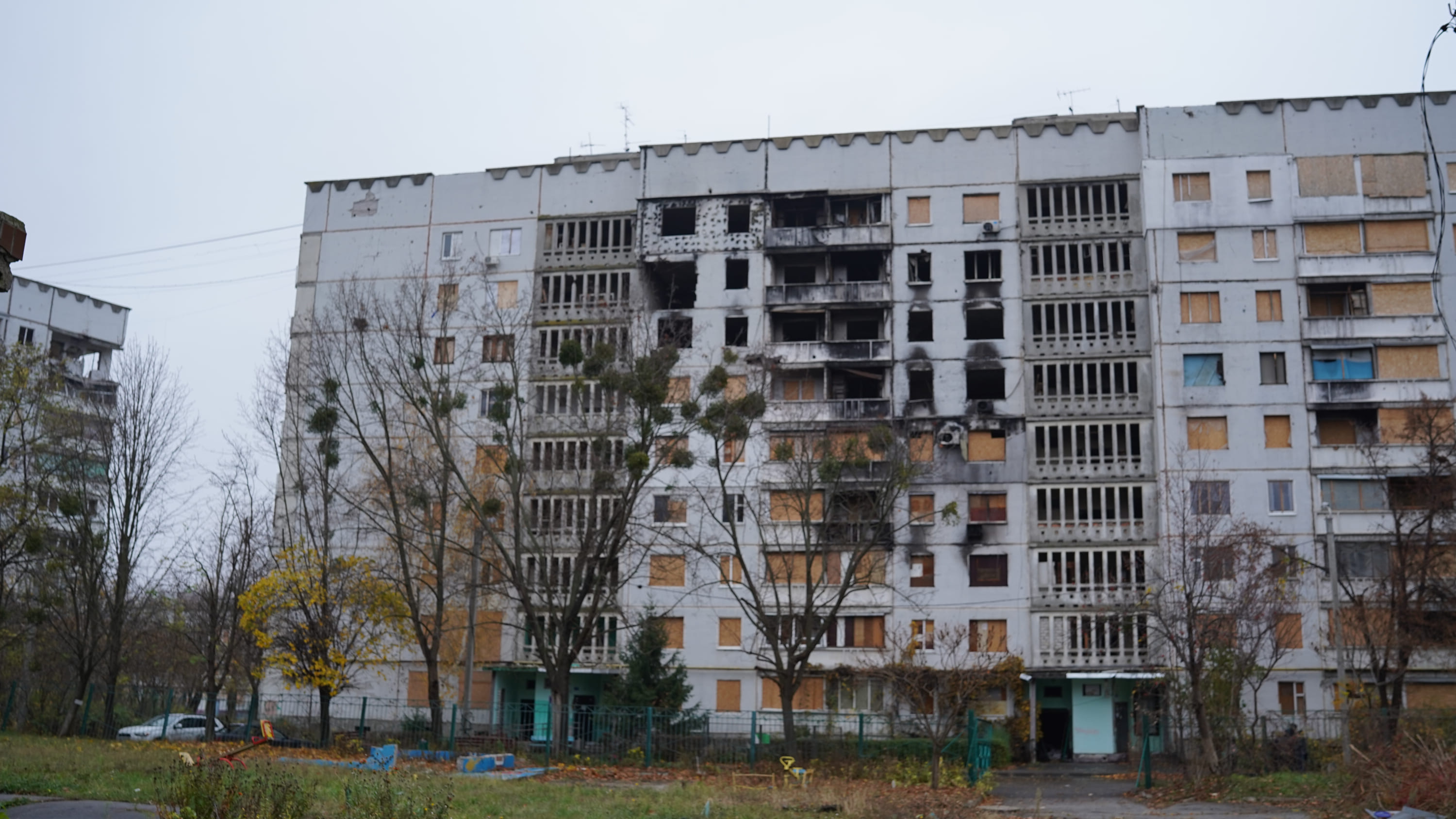 During the Russian shelling, the first row of apartment blocks served as a protective wall for the rest of the district. But the buildings there are not unscathed either.
