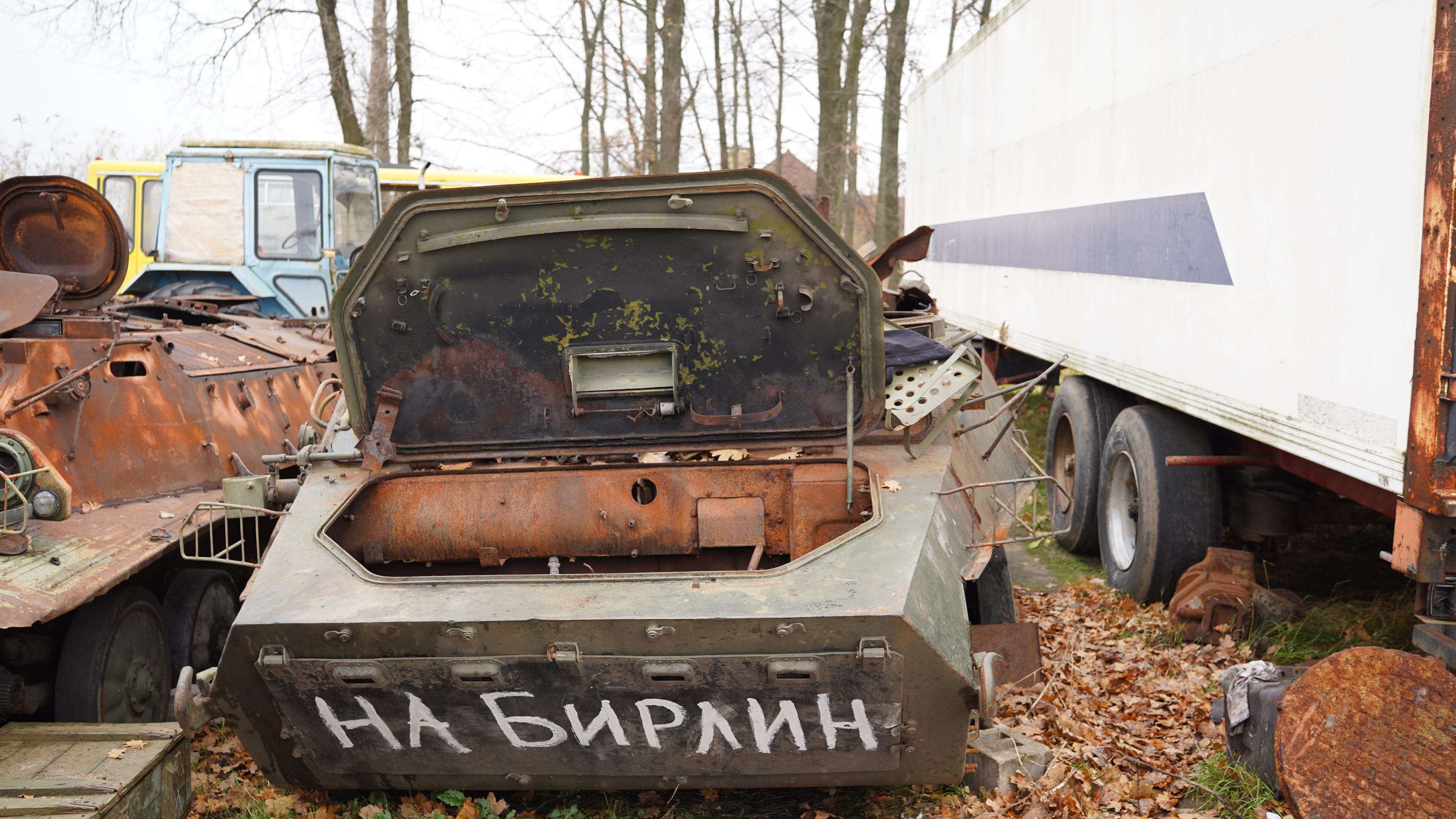 "They wanted to go further west," says Mykola Sikalenko, Tsyrkuny’s village head. A dilapidated BRDM-2 armoured vehicle with "To Berlin'' painted on it serves as proof of that. Its journey ended just 20 km after the Russian border. It didn't even make it to Kharkiv itself.
