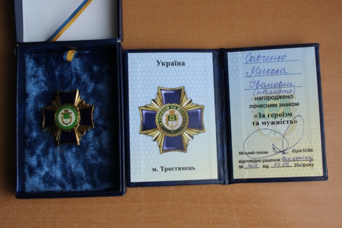 Ukraine's Armed Forces liberated the town of Trostyanets’ on 26 March 2022. A year and a half later, on City Day in September 2023, Mykola Savchenko was posthumously awarded the badge of honour for heroism and courage.