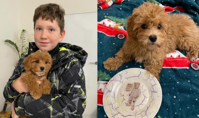 So when our son saw a Maltipoo at the camp, he stopped asking for just any old dog. Luka said this kind of dog was the same colour red as Daddy's beard, and that he would sleep better with one," Maryna says.