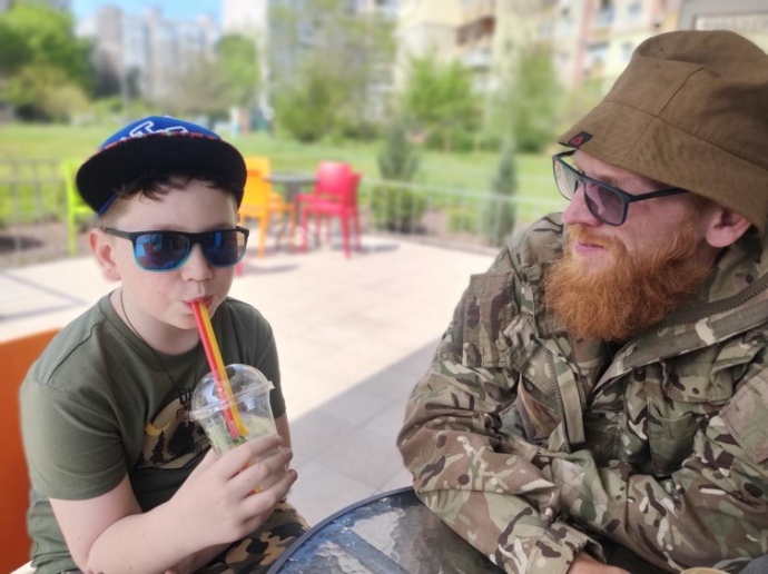 Serhii came home after Easter, on 4 May. He only managed to get away for one day, as he had been on sick leave after suffering a concussion.