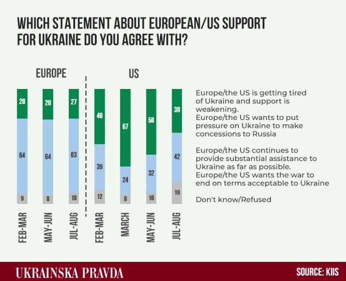 As shown in the August survey by Kyiv International Institute of Sociology, more and more Ukrainians are beginning to return to the view that the US is working to ensure the war ends on terms acceptable to Ukraine.