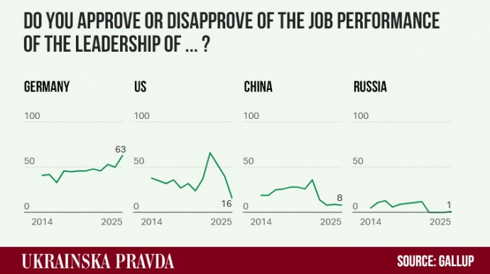 At the beginning of the invasion in 2022, the approval rating of Washington’s actions in Ukraine reached 66%, but under Donald Trump’s presidency it plummeted to 16%. Seventy-three per cent of Ukrainians now disapprove of the course chosen by the new US leadership.
