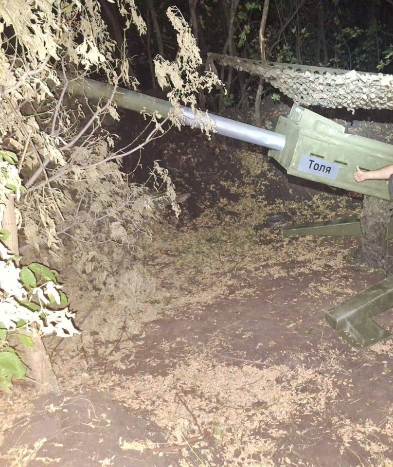 Plywood decoys help too. We recently had a double success: a Russian drone came in to destroy a decoy, but ended up tangled in the nets. At the moment, we're producing plywood mock-ups of M777s for around 17,000 to 25,000 hryvnias [approximately US$407 to US$598] each. We've deployed over a hundred so far. From a distance, only the barrel sticks out, so it's impossible to tell it's not the real thing.