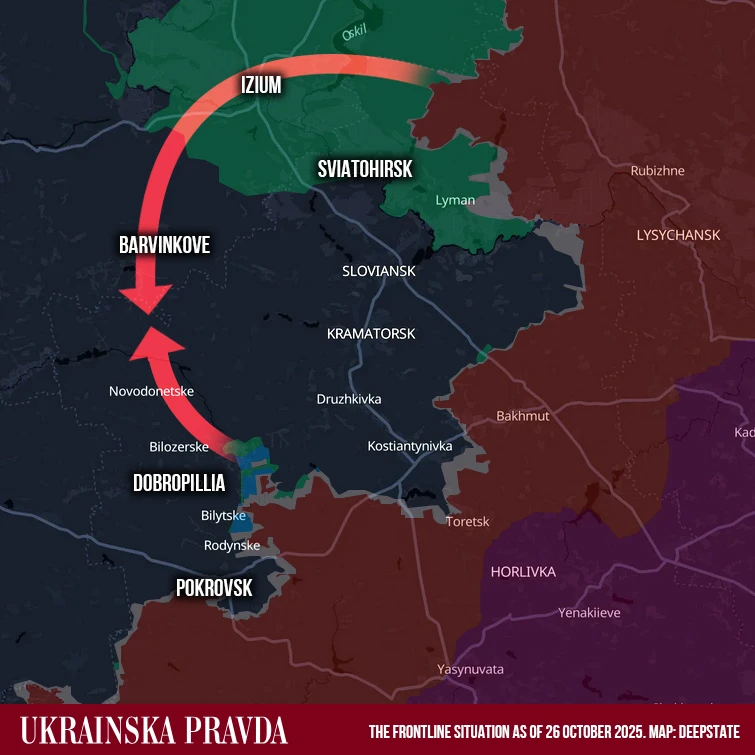 "If Pokrovsk falls, there will be no way out for the garrison in Myrnohrad," one officer on the Myrnohrad front told Ukrainska Pravda. "Our supply line to Myrnohrad is over 20 km long. Rotations are almost impossible. We can't evacuate the fallen. [The Russians] are pressing towards Rodynske, and Chervonyi Lyman is already under their control. People are working at their limit, and they realise that encirclement is getting closer."