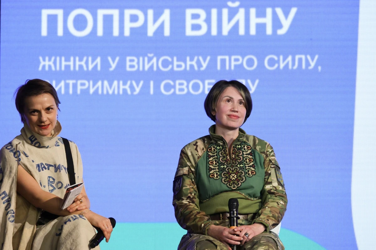 For the first discussion panel of the evening, dedicated to women in the military, the organisers invited Tetiana Chornovol, an officer and operator of the Stugna-P anti-tank system; Yevа "Yunha" Smyrnova, an FPV drone operator from the National Guard's Rubizh Brigade; Kateryna Rotarenko, a servicemember and search specialist from the On the Shield mission; and Rina Reznyk, head of the support service of the National Guard's 12th Special Operations Brigade Azov.