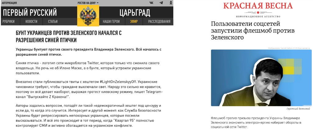 On November, 1, 2022, a collaborator and a former Ukrainian MP, Illya Kyva, posted the news saying that Ukrainian people were allegedly "waking up" to "fight" Zelensky regime as they refuse to cut down on electricity consumption as the government requests. Thus, he declared the "flash mob" among the Ukrainian users with the hashtag #LightOnZelenskyyOff.