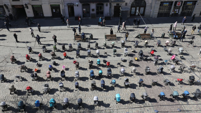 According to Sadovy: "Empty prams on the Rynok [Market] Square today are symbols of the lives of those angels who are now protecting the sky over Ukraine instead of decisively acting in the world.
