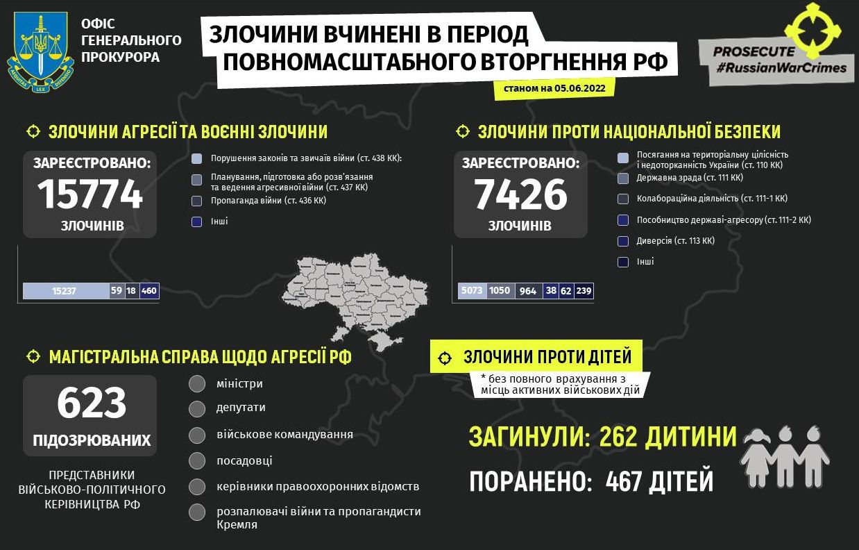In total, as of the morning of 5 June, 2022, at least 729 children have been injured in Ukraine as a result of full-scale armed aggression by the Russian Federation. These numbers are not final, as work is underway to establish the number in places of active hostility in the temporarily occupied and in the liberated territories [from Russian soldiers].