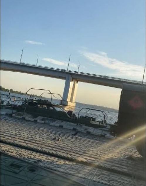 Yurii Sobolevskyi, First Deputy Chairman of Kherson Regional Council, has published photographic evidence of how the Russian occupiers are trying to build a pontoon crossing in Kherson after the Armed Forces of Ukraine damaged the Antonivka bridge with highly precise strikes.