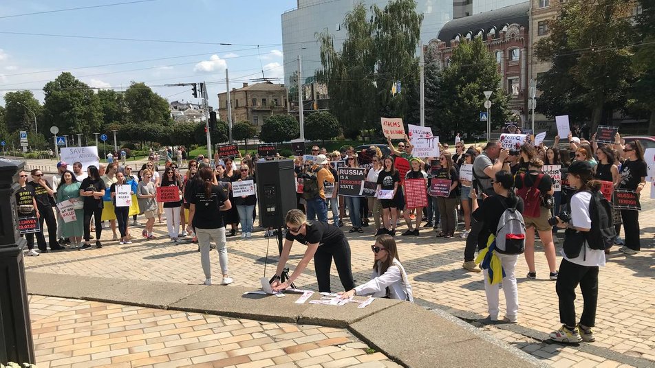 Relatives of Azovstal defenders attend rally after tragedy in Olenivka with a call to the world