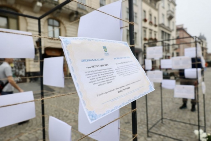 More than 40 individual diplomas were placed in the centre of Lviv on Youth Day. Students from all over the country were supposed to receive them, but their intended recipients died because of the war.