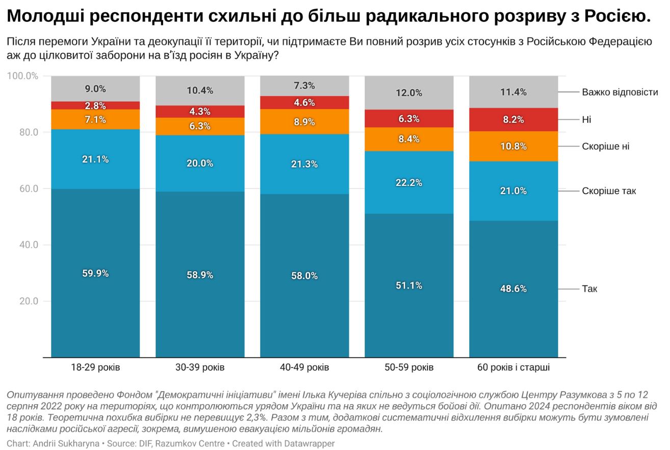 Details: In addition, more than 75 percent of respondents will support the decision [after the victory of Ukraine and liberation of its territory] to completely sever all ties with Russia, up to a complete ban on the entry of Russians into Ukraine.