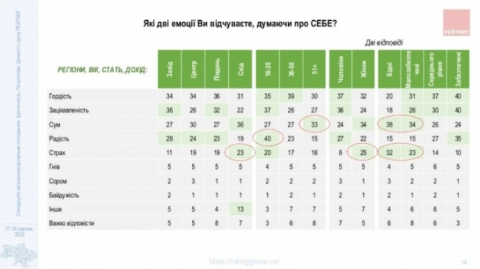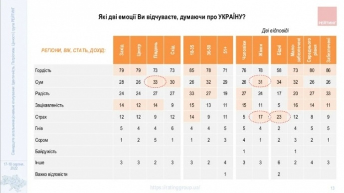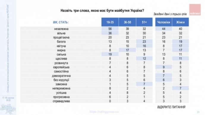 The survey was conducted by the Sociological Rating Group Ukraine on 17-18 August, 2022.