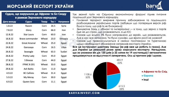 Barva Invest explained that statements like these are a tool for blackmailing the West, and for Ukraine, there is a real risk that sea exports will be disrupted.