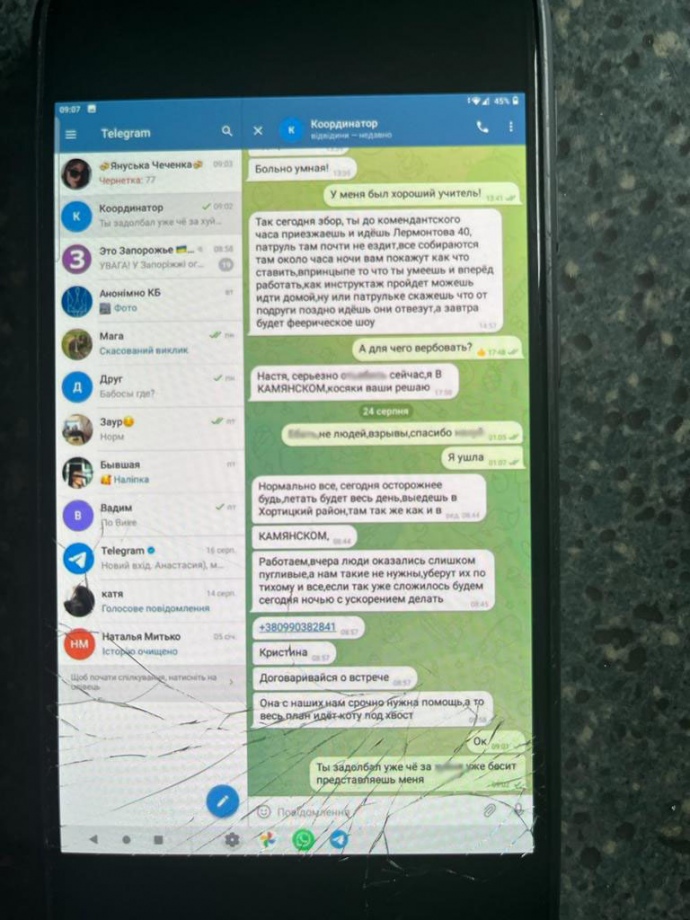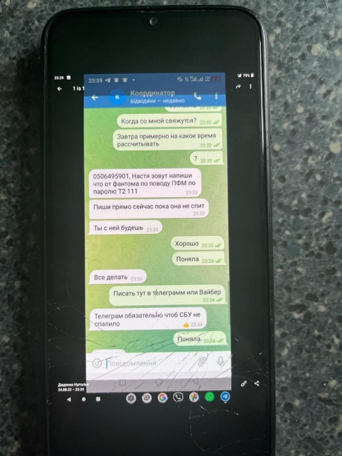 The collaborator's next hostile task was to establish contacts with Ukrainian defenders in order to locate places where units of the Ukrainian Armed Forces were deployed and active. For this purpose, she left the temporarily occupied territory for Zaporizhzhia.