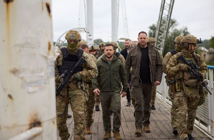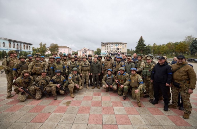 Our Blue and Yellow [flag] is now flying above liberated Izium. And so it will be in every Ukrainian city and village. We are moving in only one direction – forward to our victory."